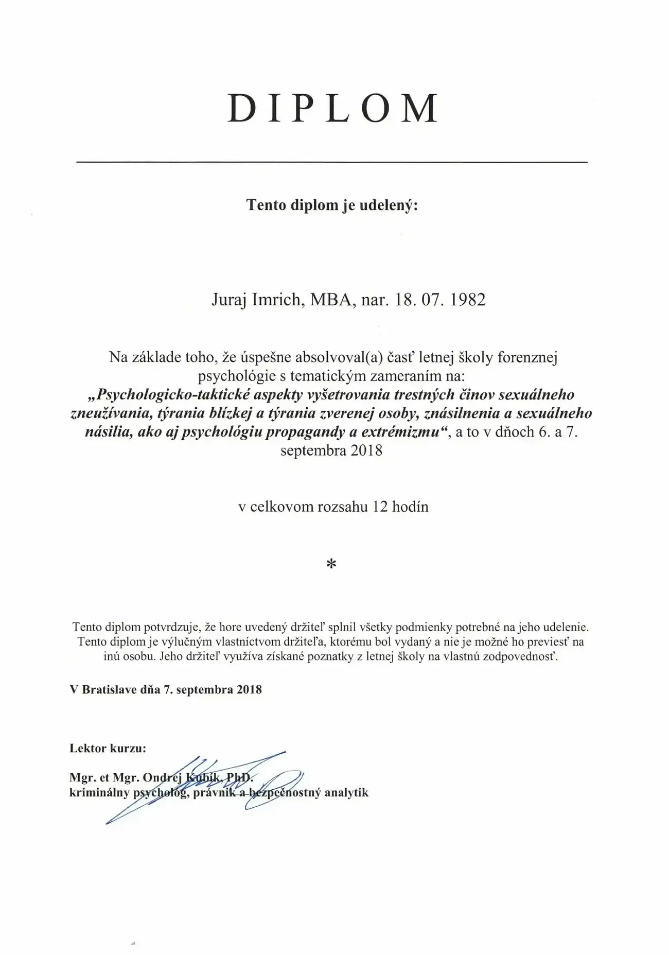 We became a member of IPO (Internation Police Organization) We created Slovak section in the organization. Ing. Juraj Imrich, MBA, CMAS has become Section Leader in Slovakia.